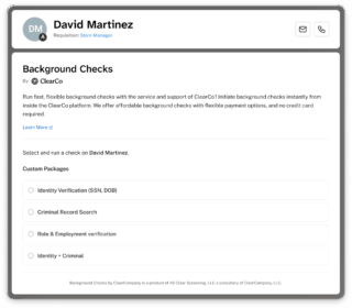 Running background checks inside the hiring process keeps momentum strong at a critical moment. Screening launches automatically, progress is easy to see, and results are documented where teams already work — so candidates stay engaged and hiring stays on track.